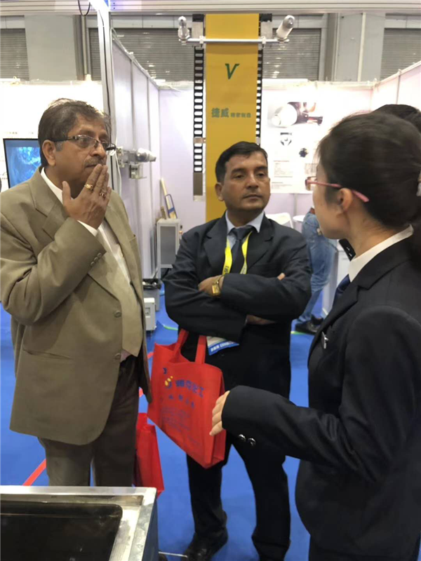 在國際貿(mào)易部工作人員的細(xì)心講說下,客商對設(shè)備有了直觀的認(rèn)識(shí),產(chǎn)生了濃厚興趣,表達(dá)了采購意向。
